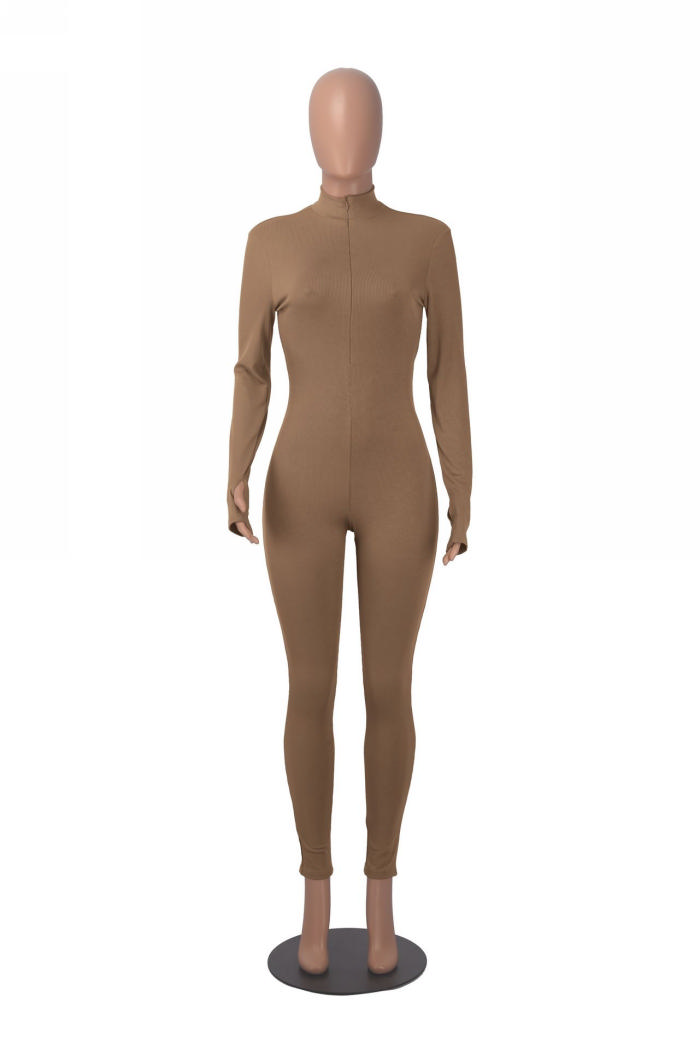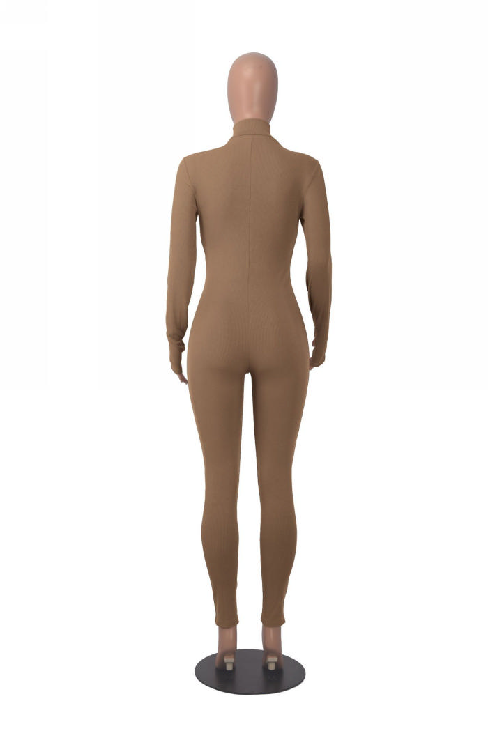 (Real Image)2024 Styles Women Sexy&Fashion Sprint/Summer TikTok&Instagram Solid Color Long Sleeve Front Zipper JumpsuitSKU: #CF97012-4