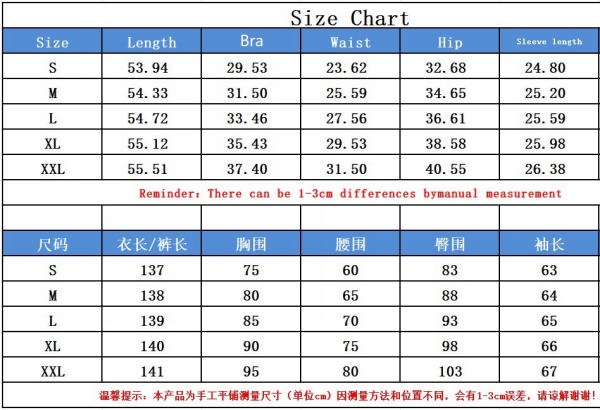 | Size | Bust | Waist | Hips |