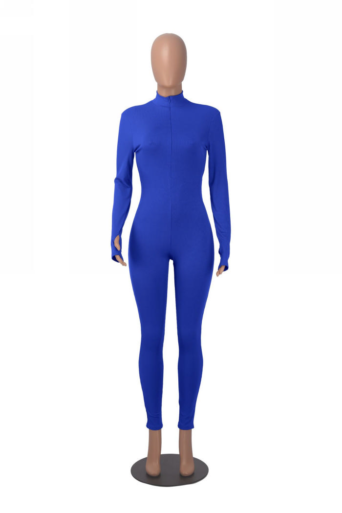 (Real Image)2024 Styles Women Sexy&Fashion Sprint/Summer TikTok&Instagram Solid Color Long Sleeve Front Zipper JumpsuitSKU: #CF97012-3
