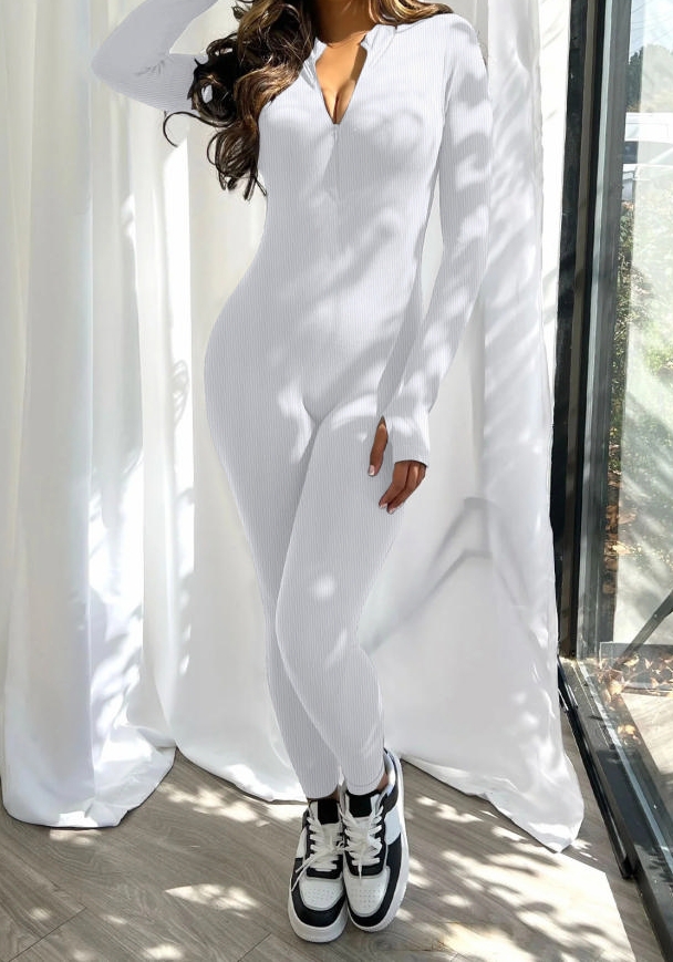 (Real Image)2024 Styles Women Sexy&Fashion Sprint/Summer TikTok&Instagram Solid Color Long Sleeve Front Zipper JumpsuitSKU: #CF97012-2