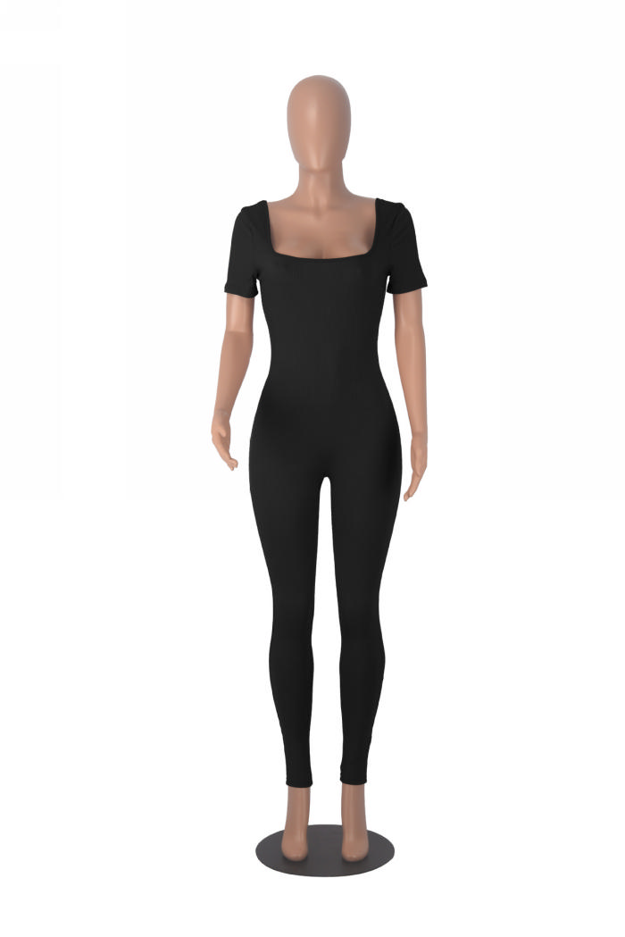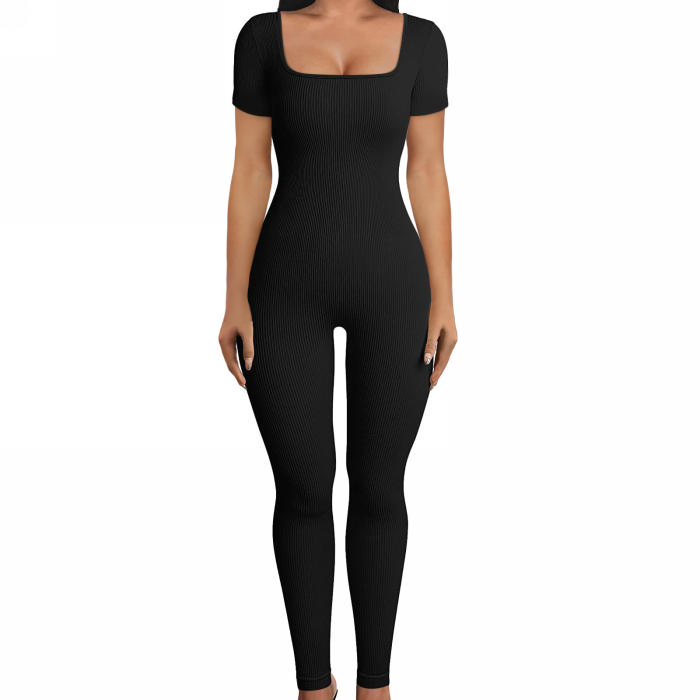 (Real Image)2024 Styles Women Sexy&Fashion Sprint/Summer TikTok&Instagram Solid Color Round Neck Short Sleeve JumpsuitSKU: #CF97004-1