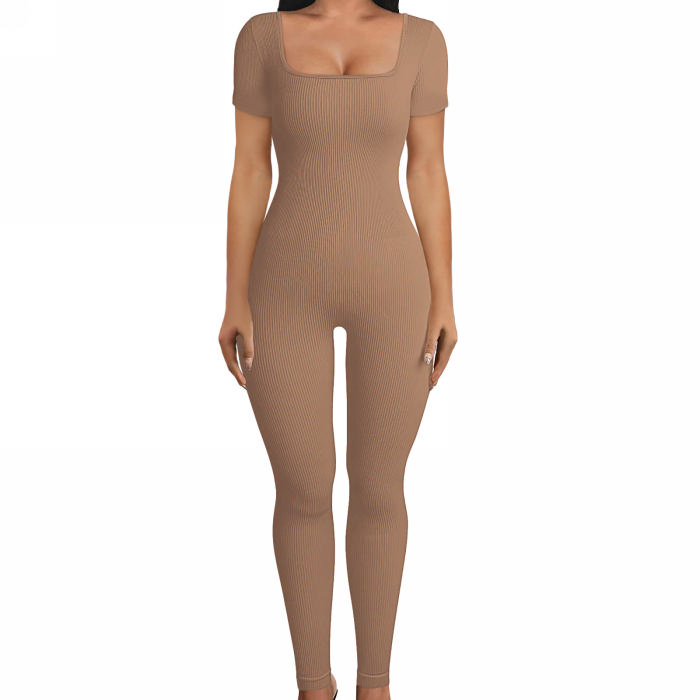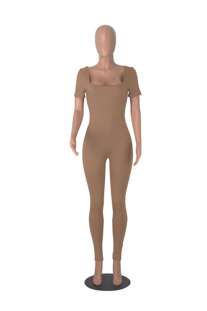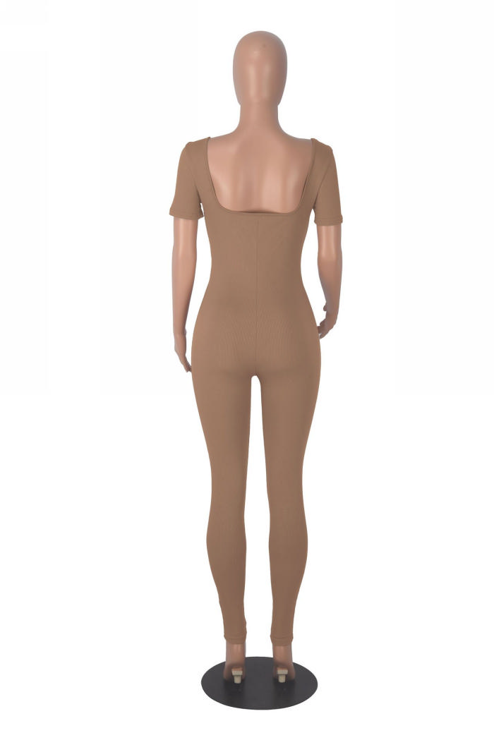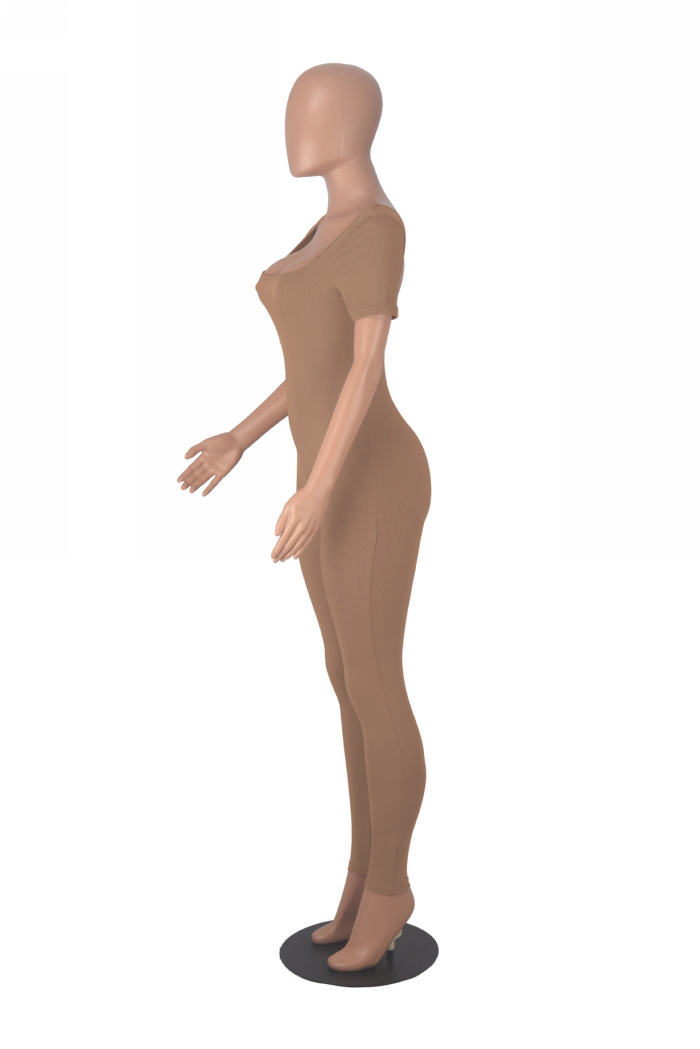 (Real Image)2024 Styles Women Sexy&Fashion Sprint/Summer TikTok&Instagram Solid Color Round Neck Short Sleeve JumpsuitSKU: #CF97004-3