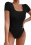 (Real Image)2024 Styles Women Sexy&Fashion Sprint/Summer TikTok&Instagram Solid Color Short Sleeve BodysuitSKU: #CF97014-2