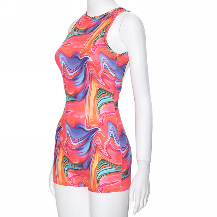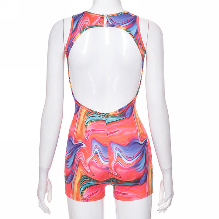 (Real Image)2024 Styles Women Sexy&Fashion Sprint/Summer TikTok&Instagram Styles Backless Print RomperSKU: #CF92011-1