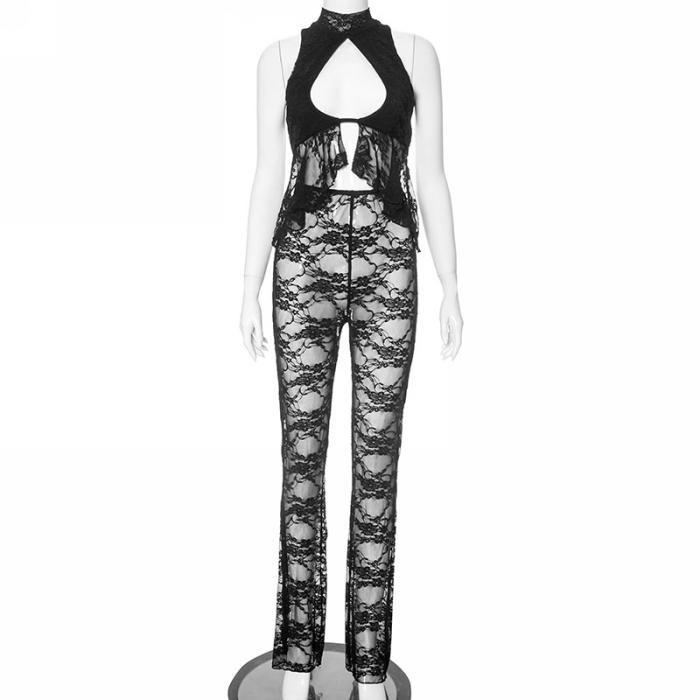 (Real Image)2024 Styles Women Sexy&Fashion Sprint/Summer TikTok&Instagram Styles Black Lace Two Piece SuitSKU: #CF92013-1