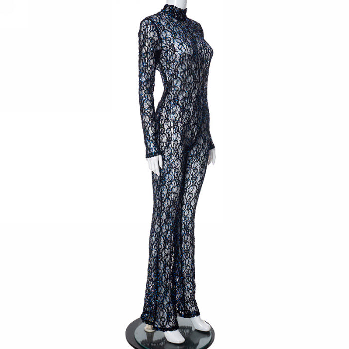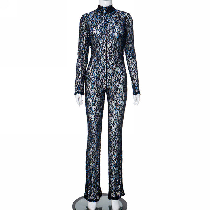 (Real Image)2024 Styles Women Sexy&Fashion Sprint/Summer TikTok&Instagram Styles Black Sequin JumpsuitSKU: #CF92021-1