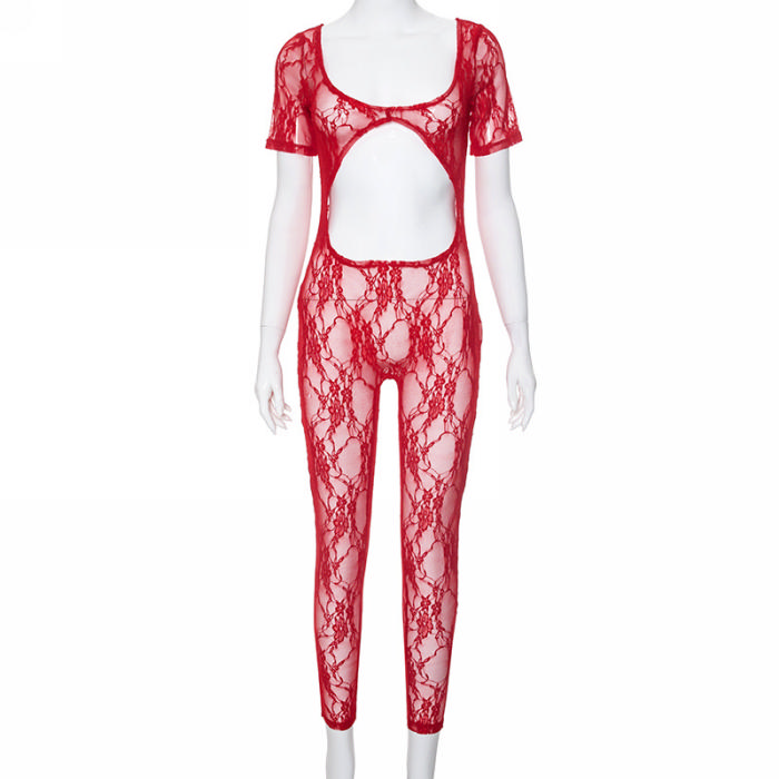 (Real Image)2024 Styles Women Sexy&Fashion Sprint/Summer TikTok&Instagram Styles Cut Out Lace JumpsuitSKU: #CF47850-1