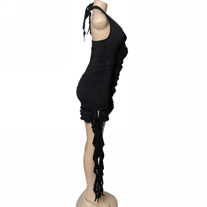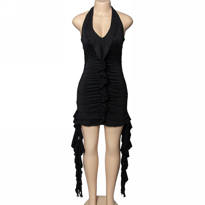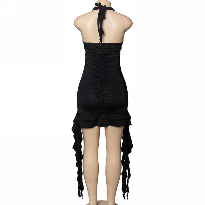 (Real Image)2024 Styles Women Sexy&Fashion Sprint/Summer TikTok&Instagram Styles Halter Tassel Ruffle Mini DressSKU: #OU2897-5