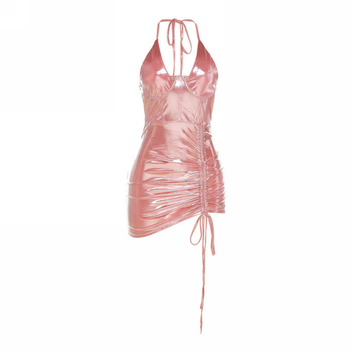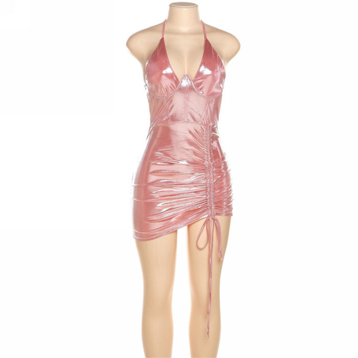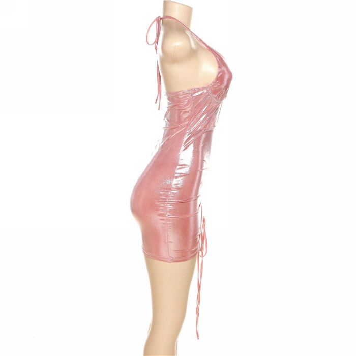 (Real Image)2024 Styles Women Sexy&Fashion Sprint/Summer TikTok&Instagram Styles Halter Tie Club DressSKU: #CF83295-5