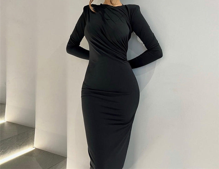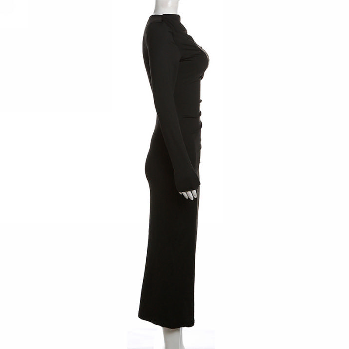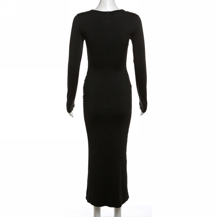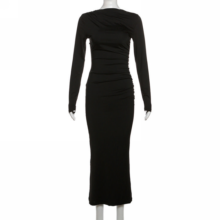 (Real Image)2024 Styles Women Sexy&Fashion Sprint/Summer TikTok&Instagram Styles Long Sleeve Round Neck Maxi DressSKU: #CF83294-1