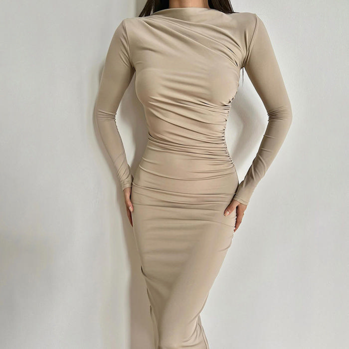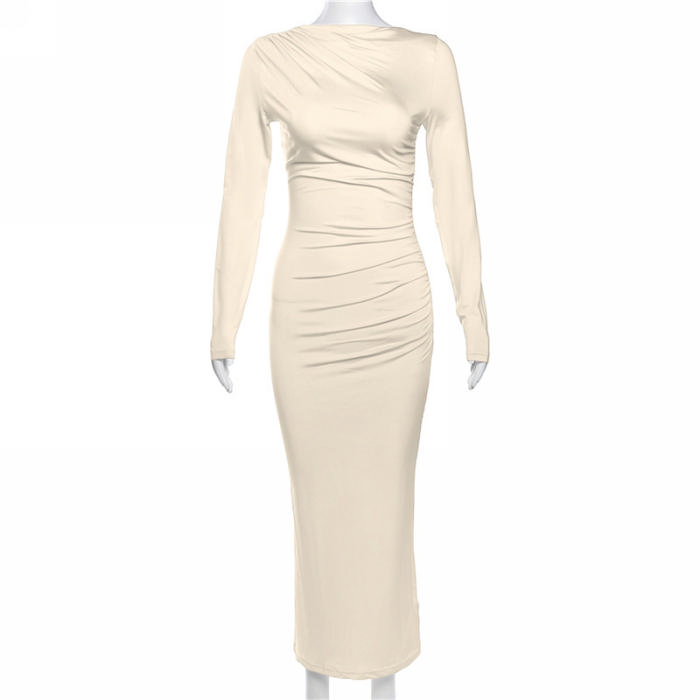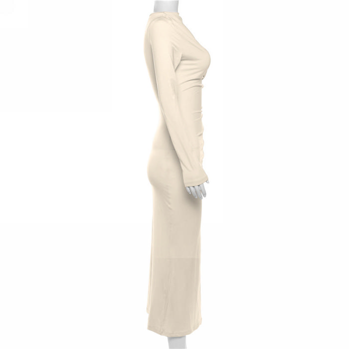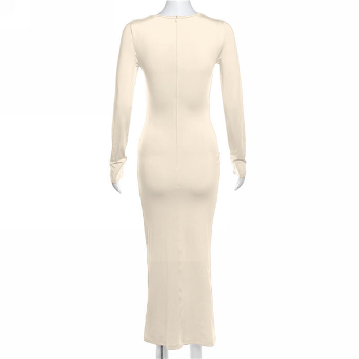 (Real Image)2024 Styles Women Sexy&Fashion Sprint/Summer TikTok&Instagram Styles Long Sleeve Round Neck Maxi DressSKU: #CF83294-5