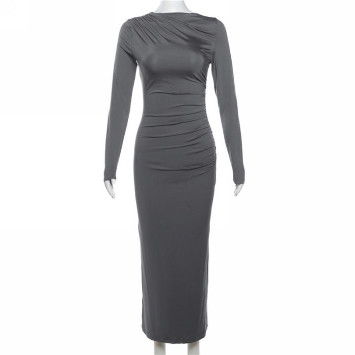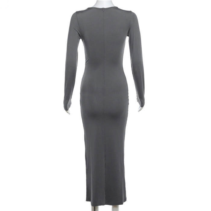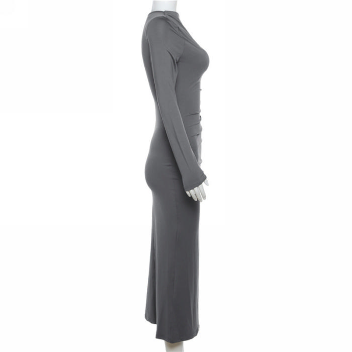 (Real Image)2024 Styles Women Sexy&Fashion Sprint/Summer TikTok&Instagram Styles Long Sleeve Round Neck Maxi DressSKU: #CF83294-4