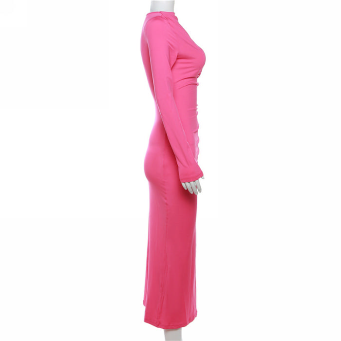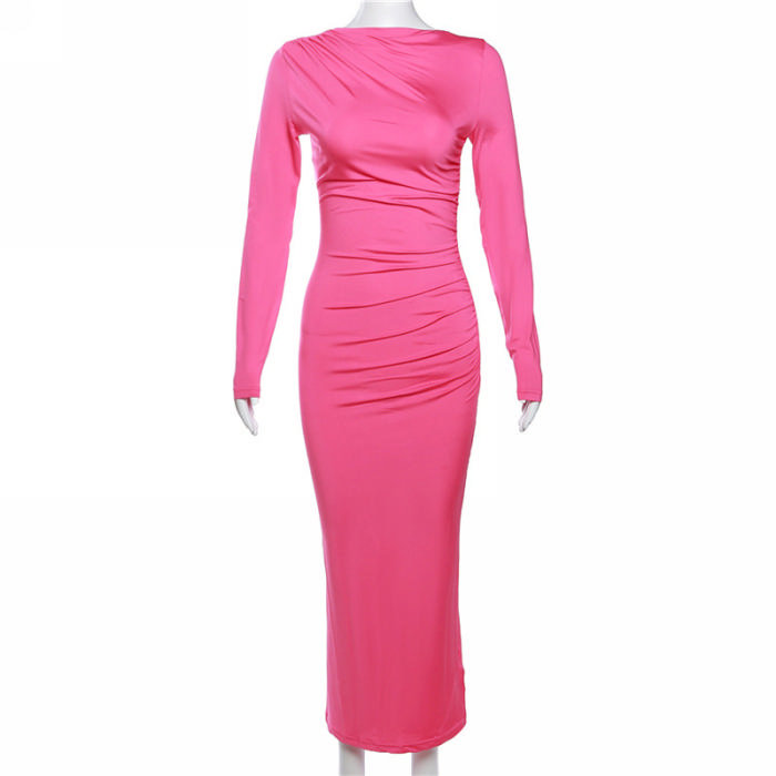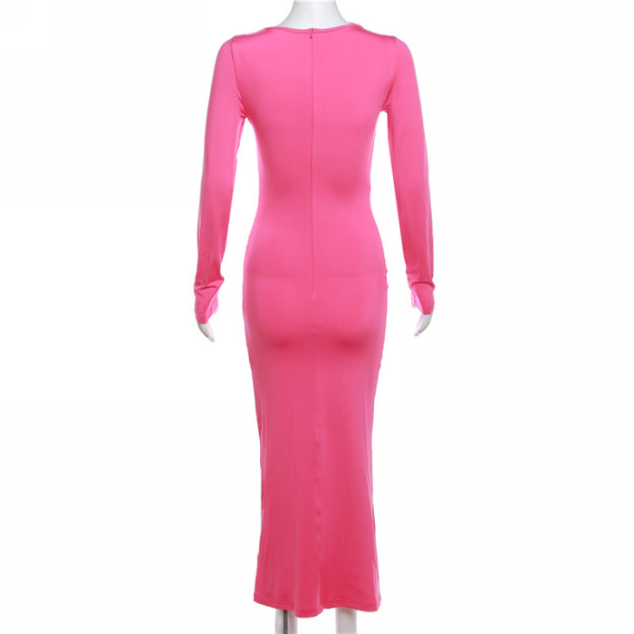 (Real Image)2024 Styles Women Sexy&Fashion Sprint/Summer TikTok&Instagram Styles Long Sleeve Round Neck Maxi DressSKU: #CF83294-3