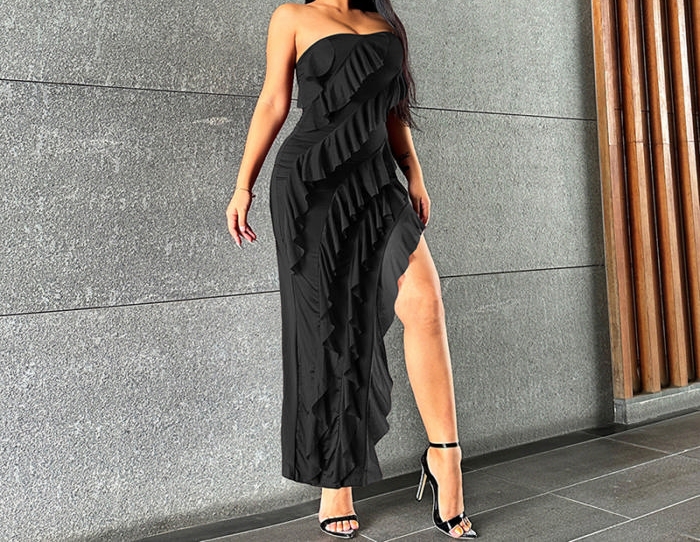 (Real Image)2024 Styles Women Sexy&Fashion Sprint/Summer TikTok&Instagram Styles Mesh Irregular Maxi DressSKU: #CF83300-1