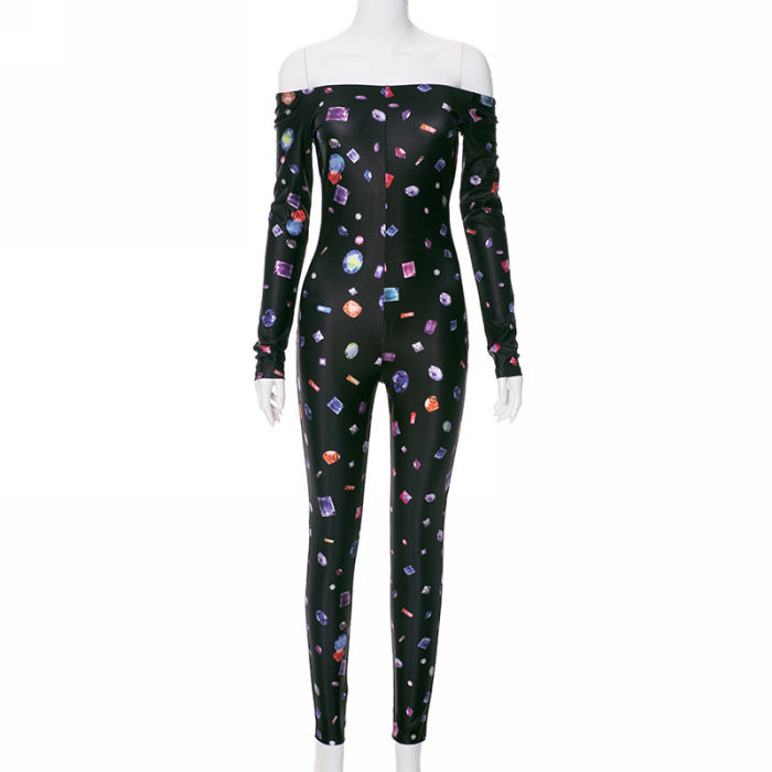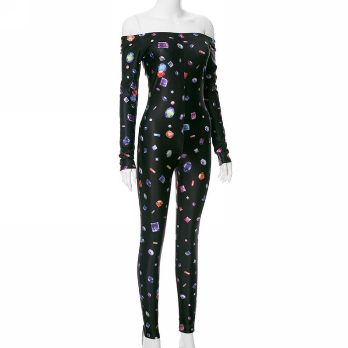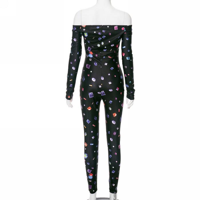 (Real Image)2024 Styles Women Sexy&Fashion Sprint/Summer TikTok&Instagram Styles Print Off Shoulder JumpsuitSKU: #OEM6018-1