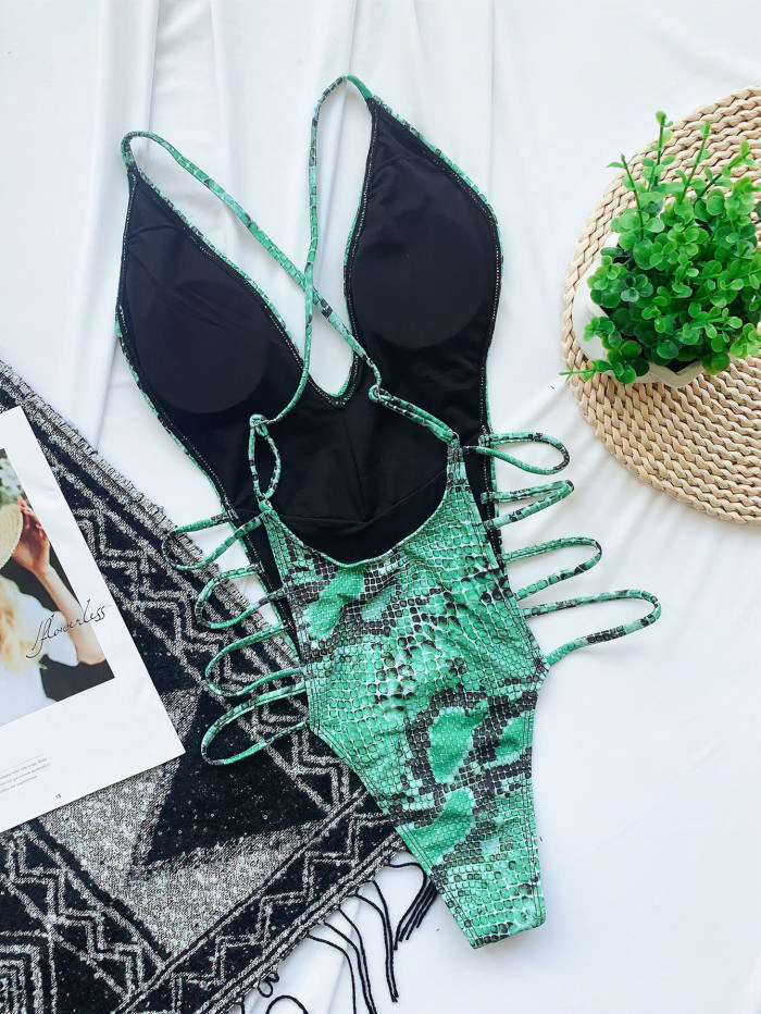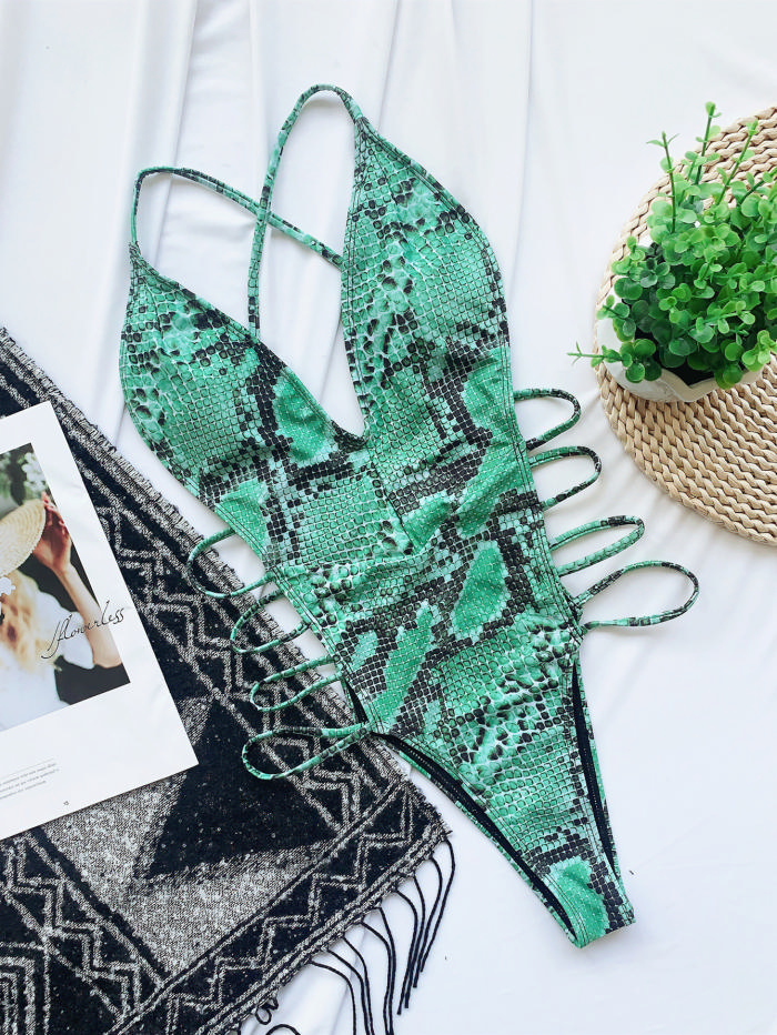 (Real Image)2024 Styles Women Sexy&Fashion Sprint/Summer TikTok&Instagram Styles Print Snake One Piece SwimwearSKU: #OU2912-4
