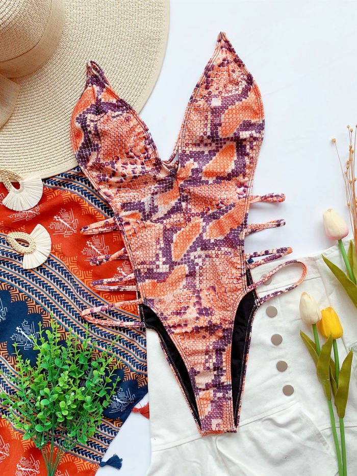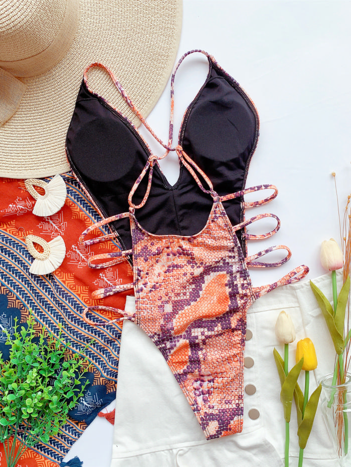 (Real Image)2024 Styles Women Sexy&Fashion Sprint/Summer TikTok&Instagram Styles Print Snake One Piece SwimwearSKU: #OU2912-3