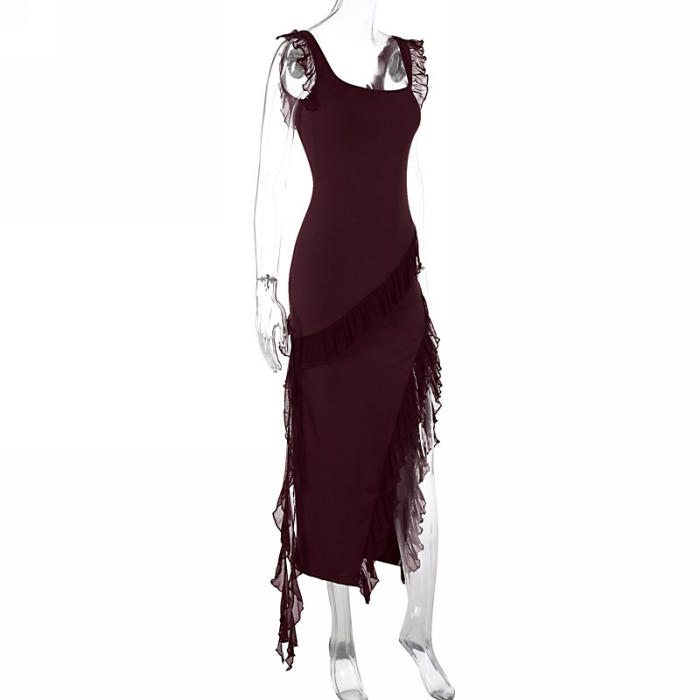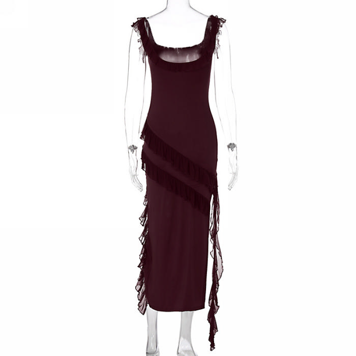 (Real Image)2024 Styles Women Sexy&Fashion Sprint/Summer TikTok&Instagram Styles Ruffle Irregular High Split Maxi DressSKU: #OU2896-5