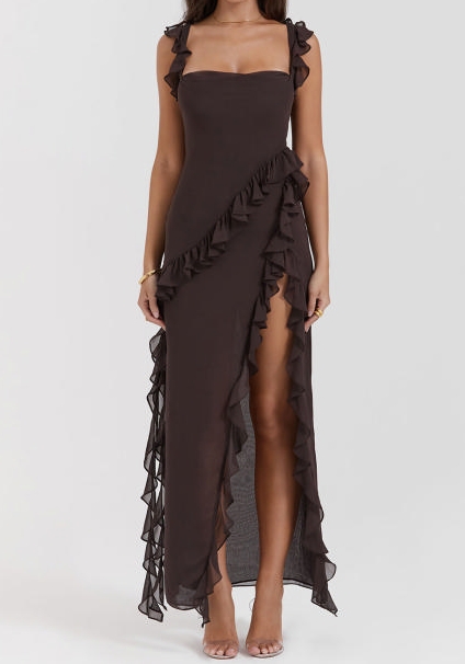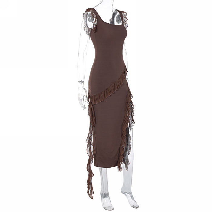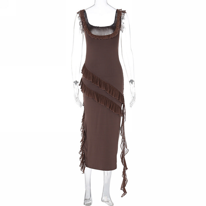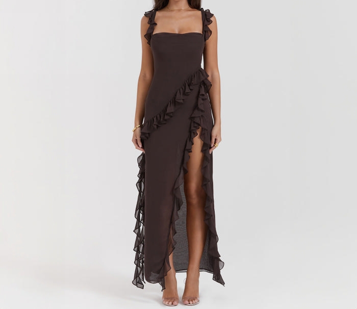 (Real Image)2024 Styles Women Sexy&Fashion Sprint/Summer TikTok&Instagram Styles Ruffle Irregular High Split Maxi DressSKU: #OU2896-3