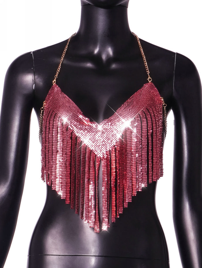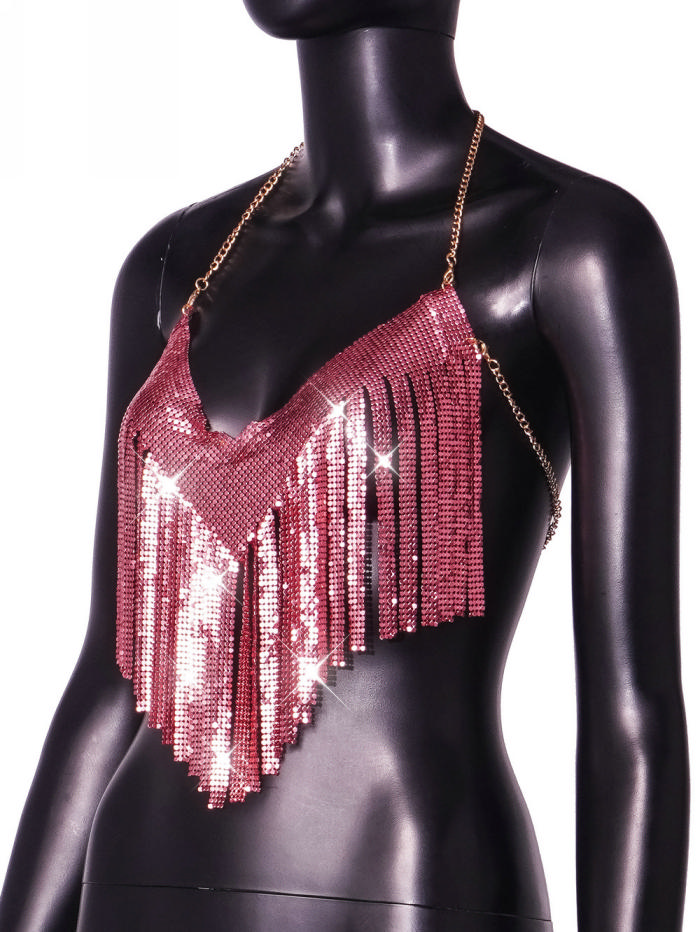 (Real Image)2024 Styles Women Sexy&Fashion Sprint/Summer TikTok&Instagram Styles Sequins Halter Tank TopsSKU: #CF90092-1