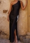 (Real Image)2024 Styles Women Sexy&Fashion Sprint/Summer TikTok&Instagram Styles Soli Color Single Shoulder Maxi DressSKU: #OU2924-4