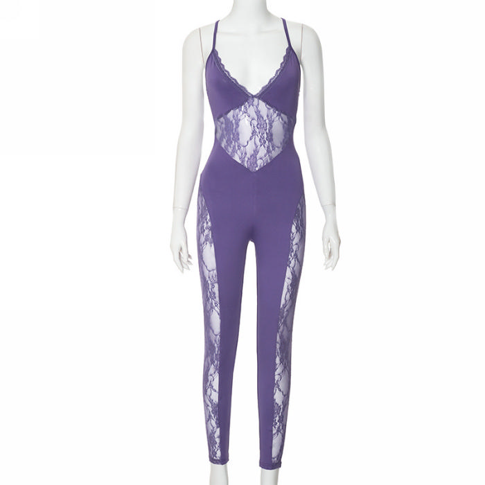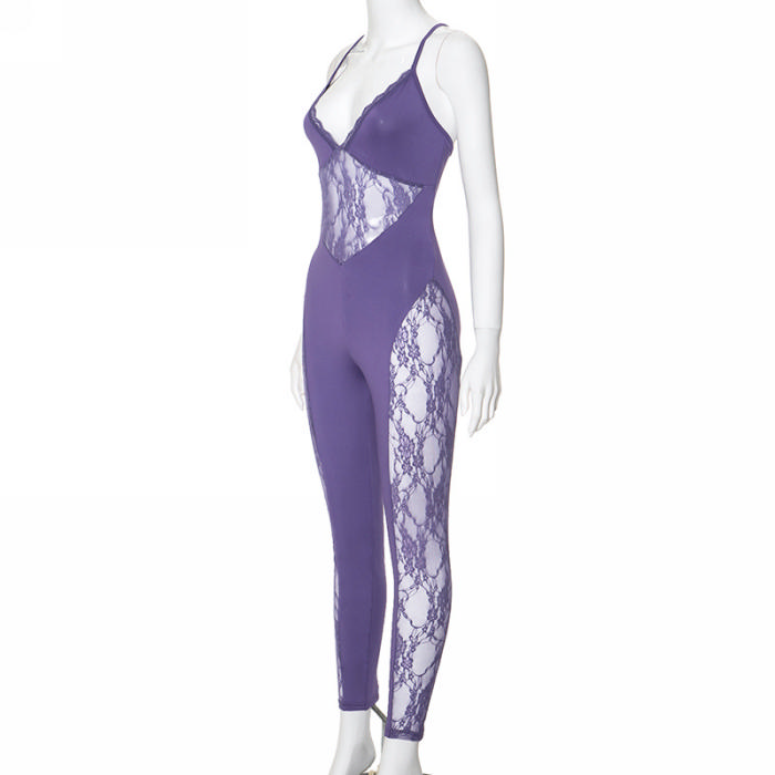 (Real Image)2024 Styles Women Sexy&Fashion Sprint/Summer TikTok&Instagram Styles Strap Lace JumpsuitSKU: #CF47861-1