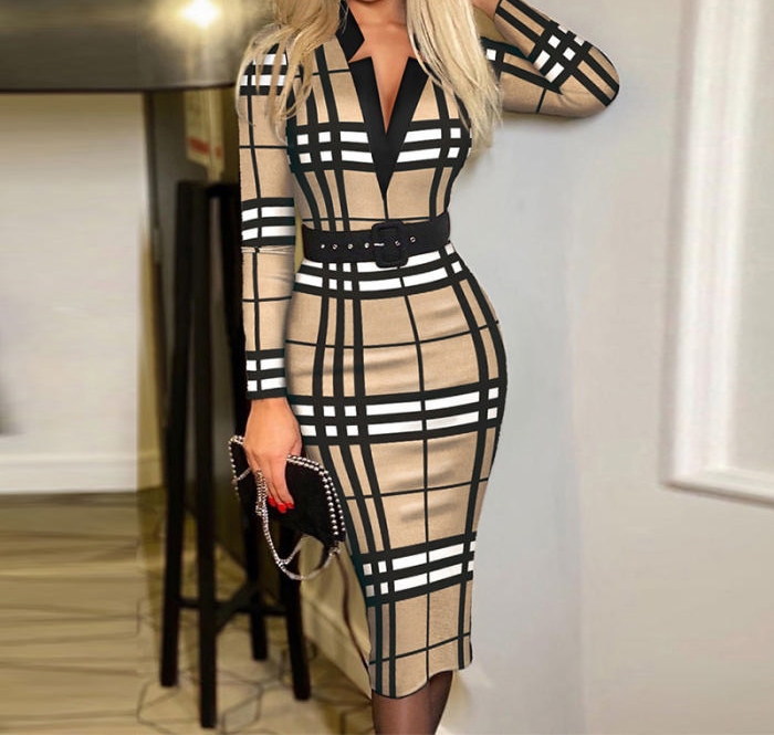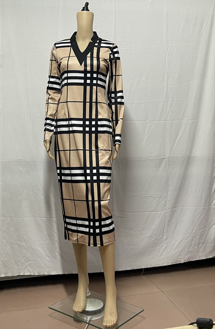 (Real Image)2024 Styles Women Sexy&Fashion Sprint/Summer TikTok&Instagram Styles V Neck Long Sleeve Midi DressSKU: #CF91010-1