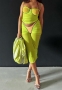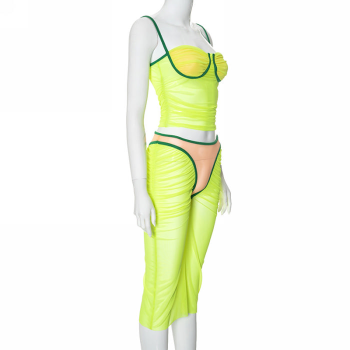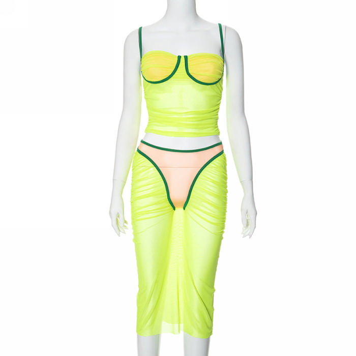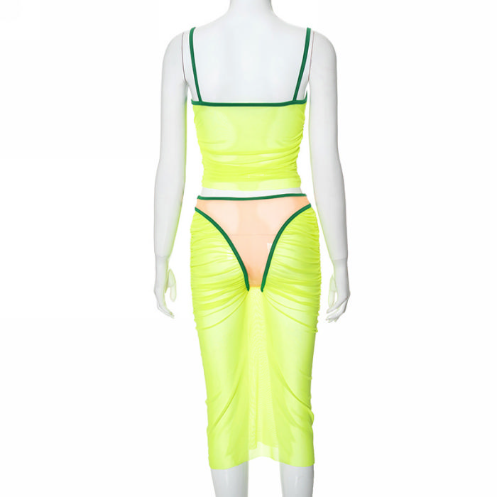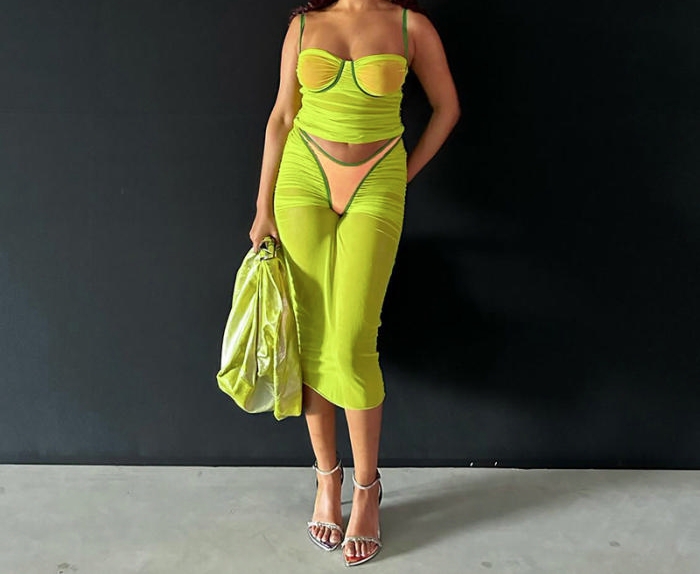 (Real Image)2024 Styles Women Sexy&Fashion Sprint/Summer TikTok&Instagram Styles Yellow Mesh Two Piece DressSKU: #CF92032-1