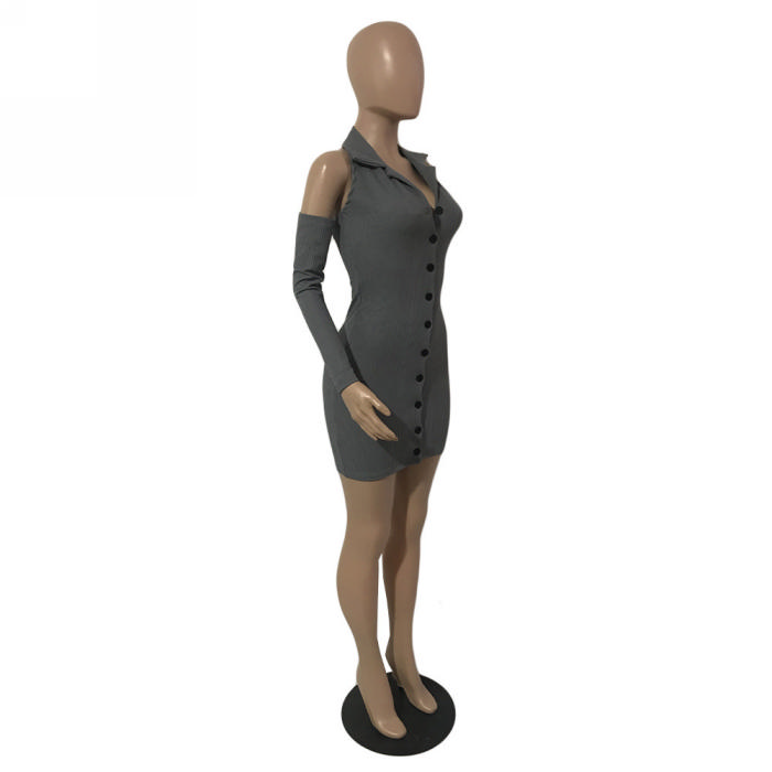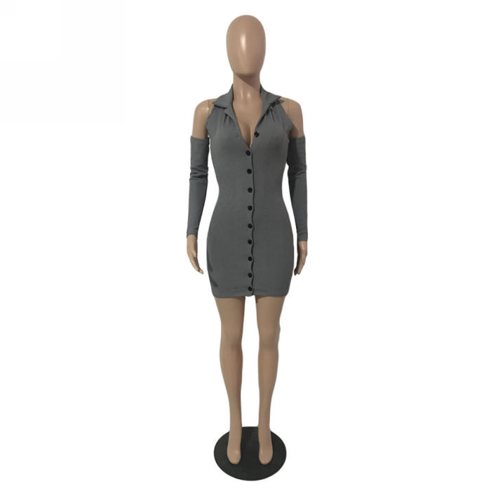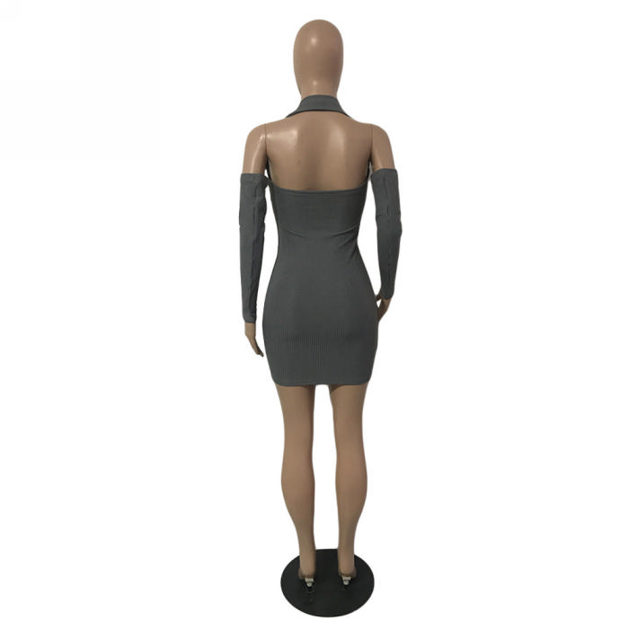 (Real Image)2024 Styles Women Sexy&Fashion Sprint/Summer TikTok&Instagram Sweater Cold Shoulder Mini DressSKU: #CF93015-1