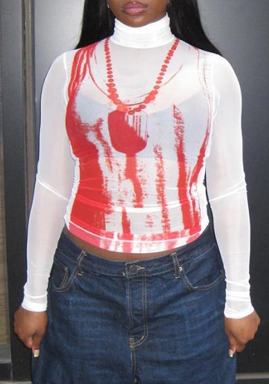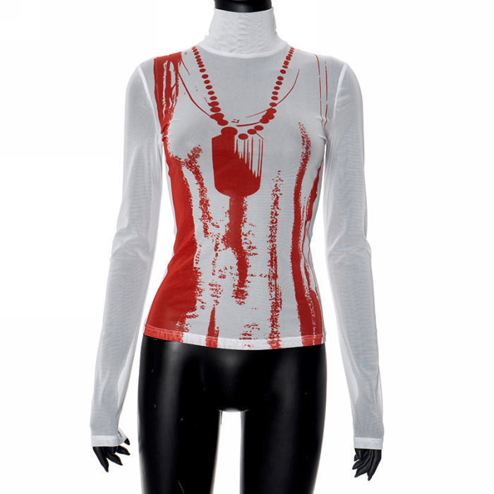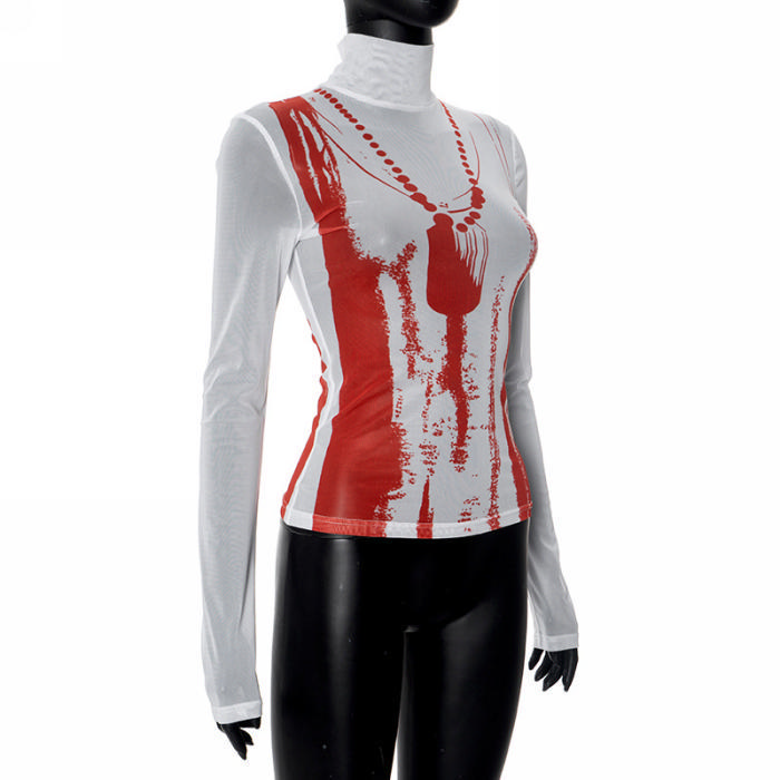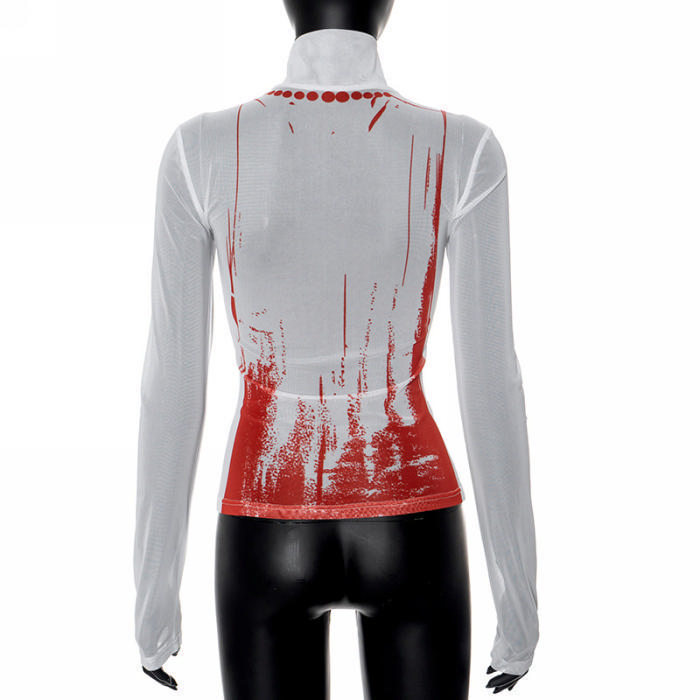 (Real Image)2024 Styles Women Sexy&Fashion Sprint/Summer TikTok&Instagram White Mesh Long Sleeve See Thorough ShirtsSKU: #CF69050-1