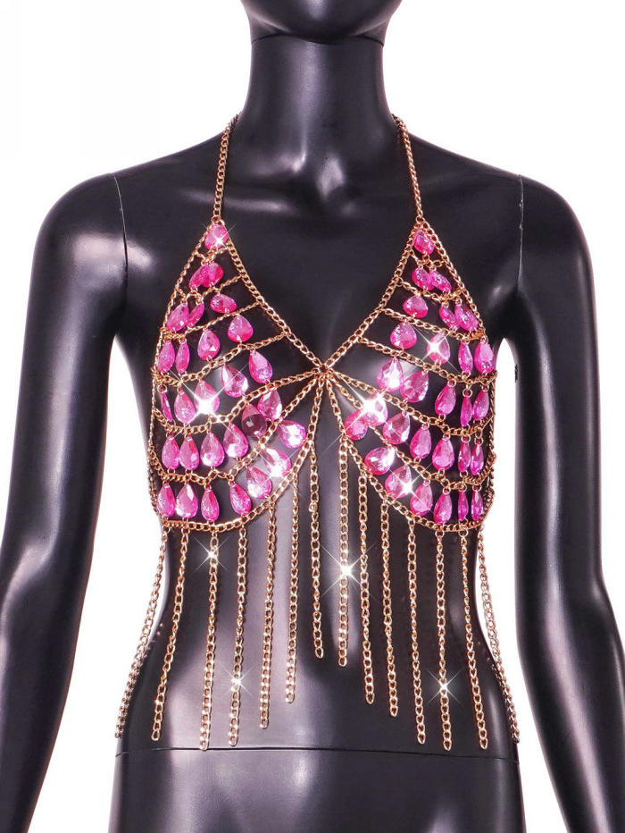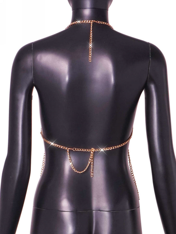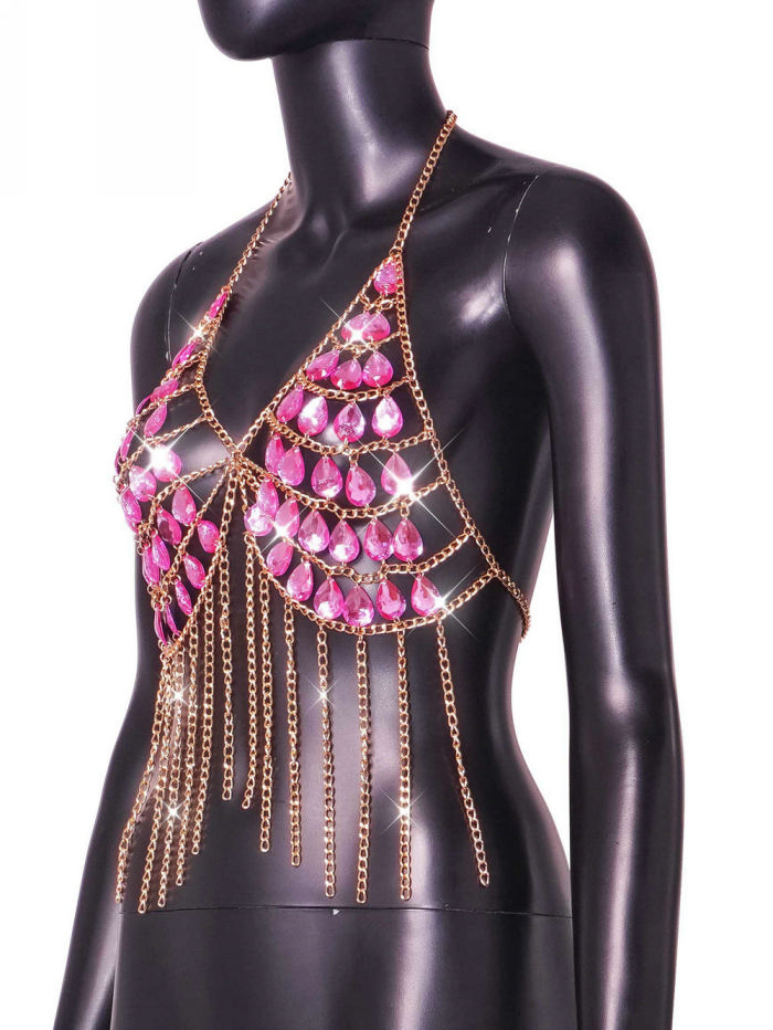 (Real Image)2024 Styles Women Sexy Gemstone Spliced Metal Tassel Chain Choker Back Vest Body ChainSKU: #CF90144-1