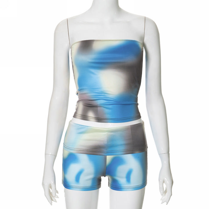 (Real Image)2024 Styles Women Sexy Gradient Halter Top and Rolled-Waist Shorts Two-Piece SetSKU: #CF92154-1