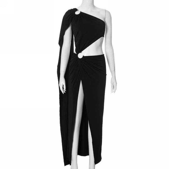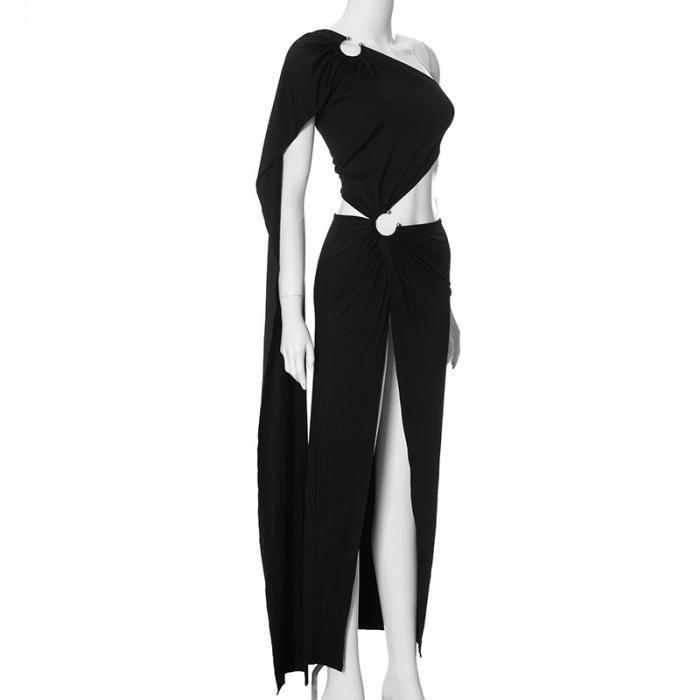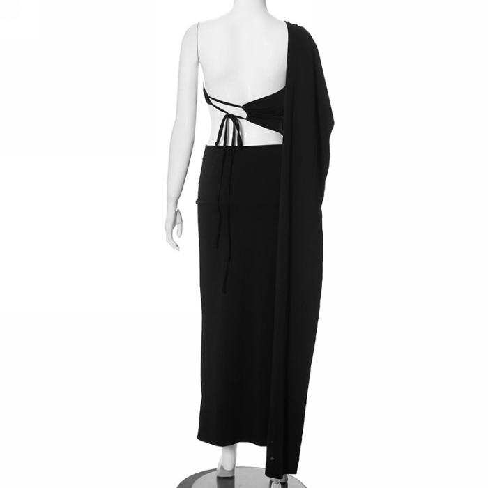 (Real Image)2024 Styles Women Sexy Halter Lace-Up Sheer Split Irregular DressSKU: #CF92140-1