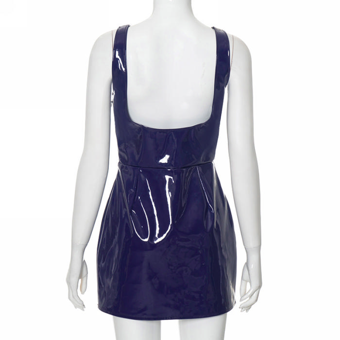 (Real Image)2024 Styles Women Sexy Mirrored PU Leather Strappy Exposed-Back DressSKU: #CF92111-1