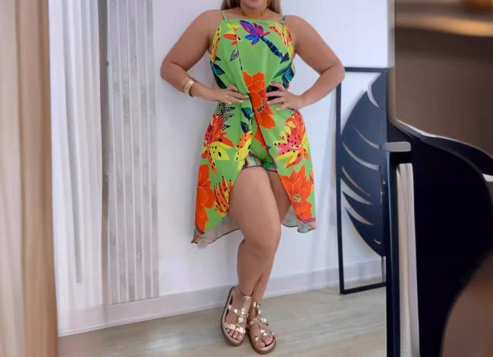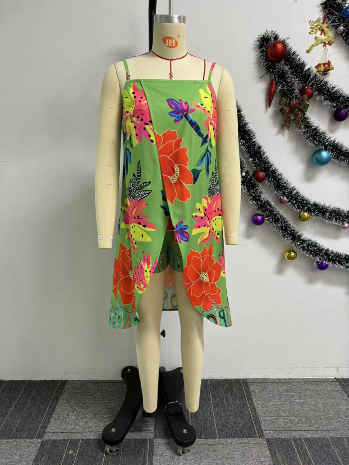 (Real Image)2024 Styles Women Sexy Print Halter Skirt Shorts Set, Two-Piece OutfitSKU: #XF27492-1