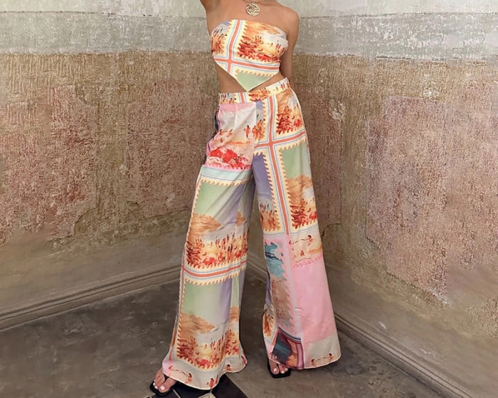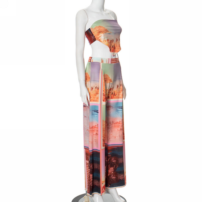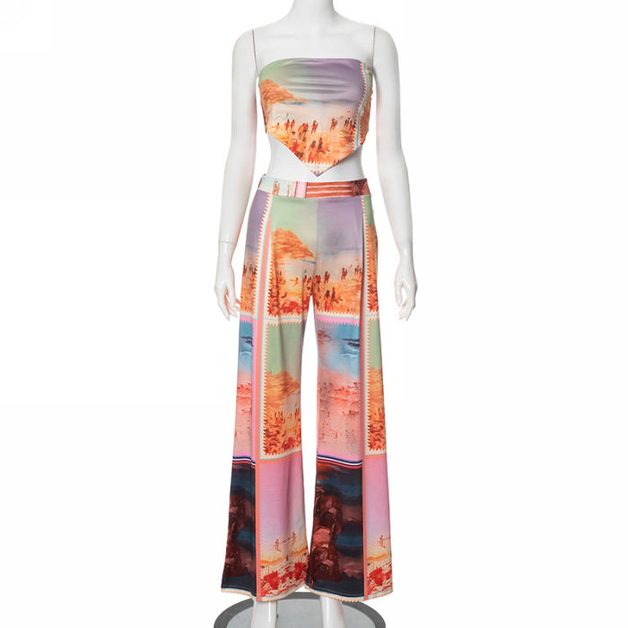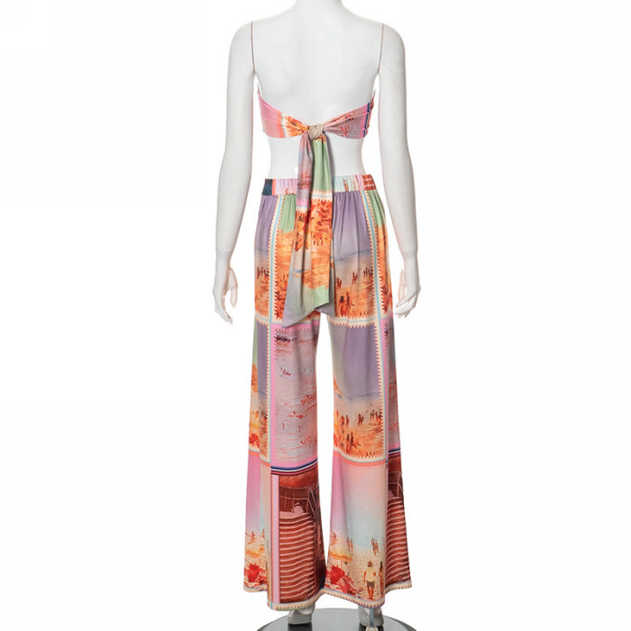 (Real Image)2024 Styles Women Sexy Printed Halter High-Waisted Pants SetSKU: #CF92134-1
