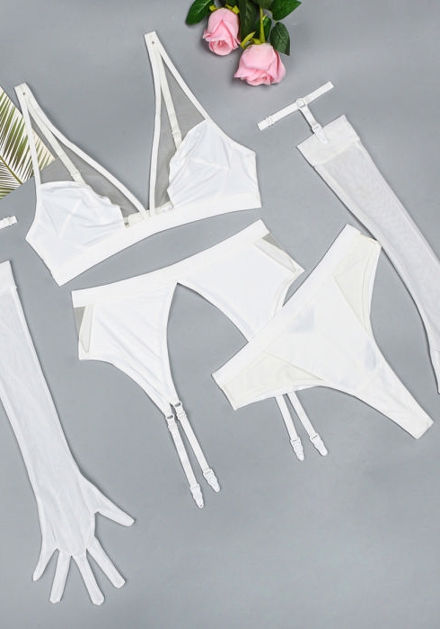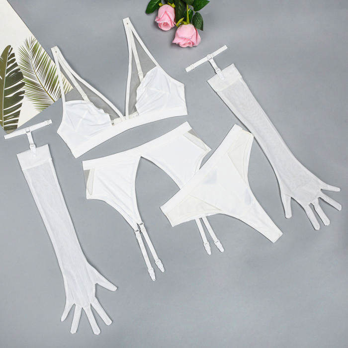 (Real Image)2024 Styles Women Sexy Sheer Net Mesh with Erotic Gloves Four-Piece SetSKU: #GF02024-2