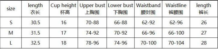 | Size | Bust | Waist | Hips |