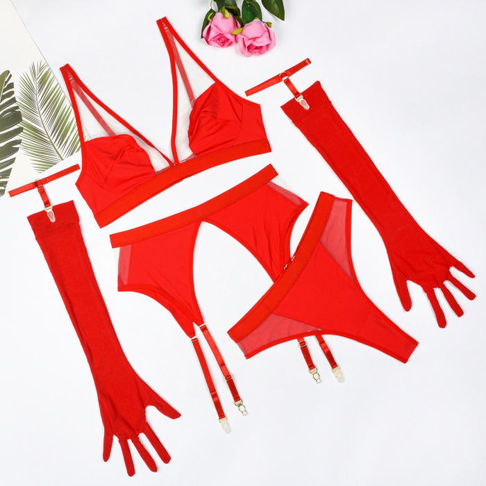 (Real Image)2024 Styles Women Sexy Sheer Net Mesh with Erotic Gloves Four-Piece SetSKU: #GF02024-3