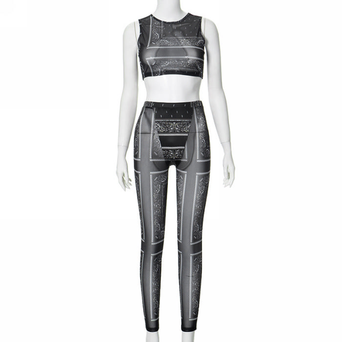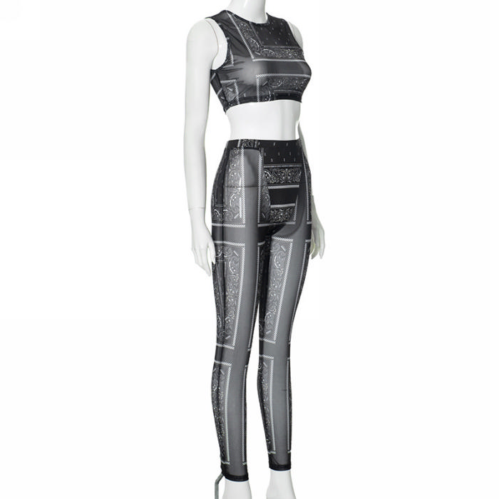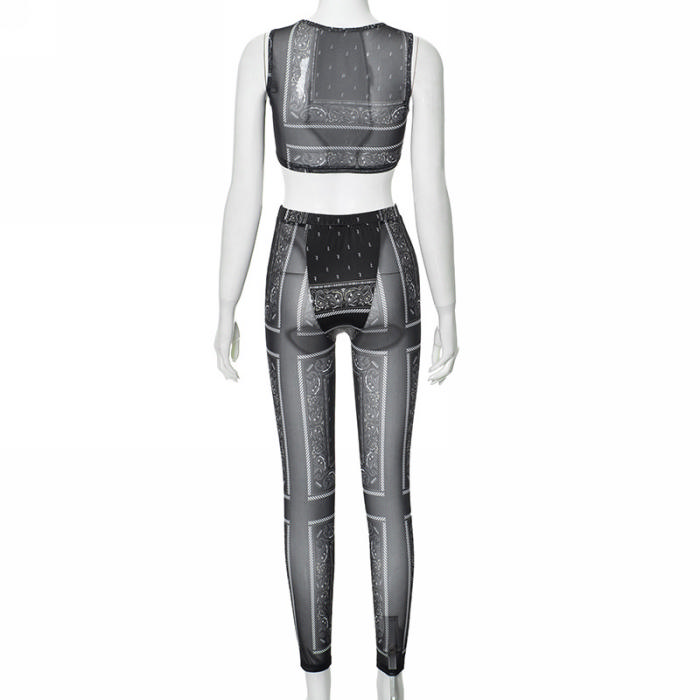 (Real Image)2024 Styles Women Sexy Sheer Sleeveless Vest and Booty-Lifting Leggings SetSKU: #CF92083-1