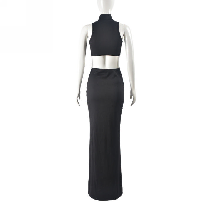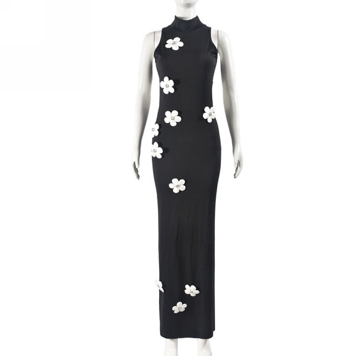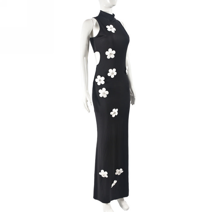 (Real Image)2024 Styles Women Sexy Sleeveless Open-Work Long Detachable Flower Maxi DressSKU: #CF59864-1