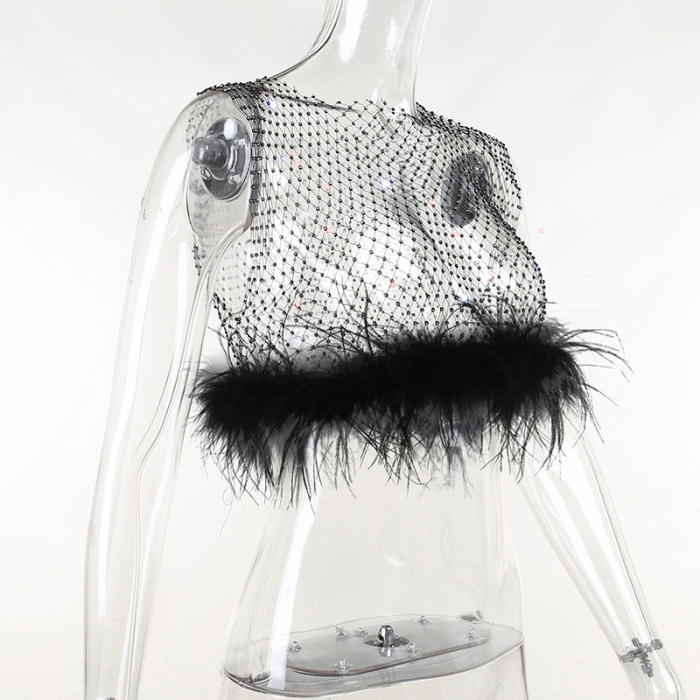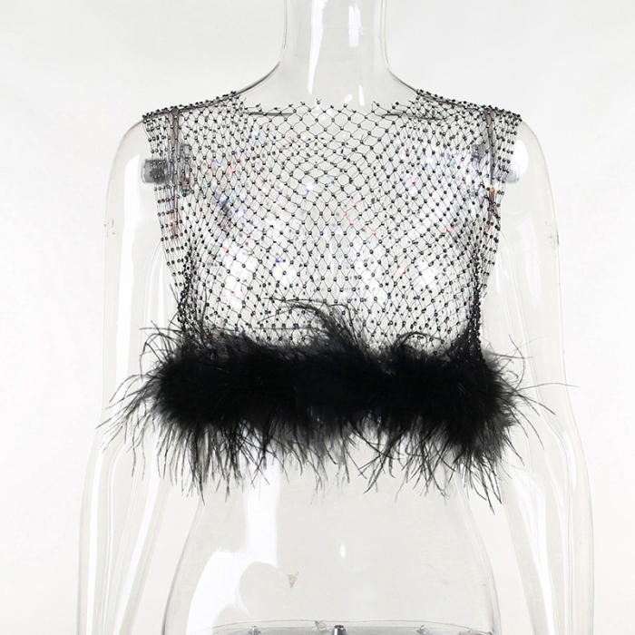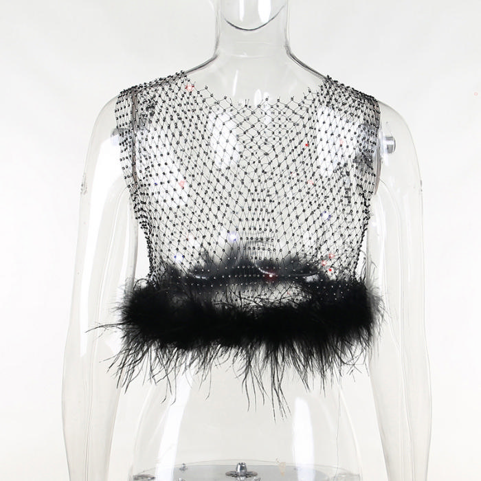 (Real Image)2024 Styles Women Sexy Spicy Club Short Versatile Mesh Fuzzy Sequined VestSKU: #XF92872-1