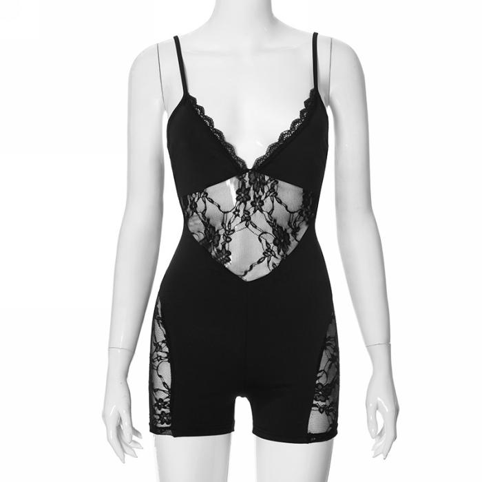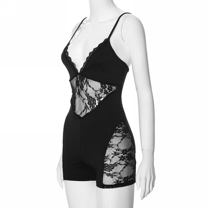 (Real Image)2024 Styles Women Sexy and Stylish Women's Lace See-Through Slim Fit Casual JumpshortsSKU: #CF92123-1