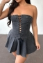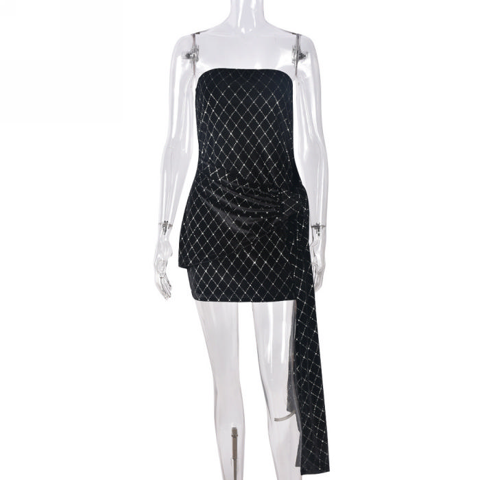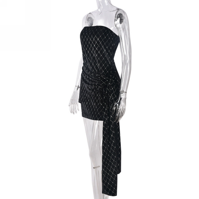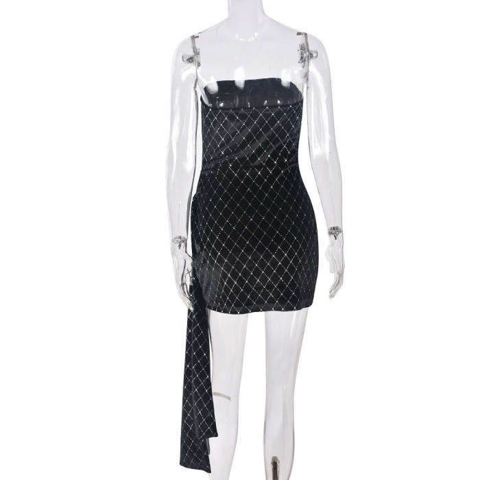 (Real Image)2024 Styles Women Sleeveless One-Shoulder Silver Foil Fitted Sexy Bustier DressSKU: #CF59938-1