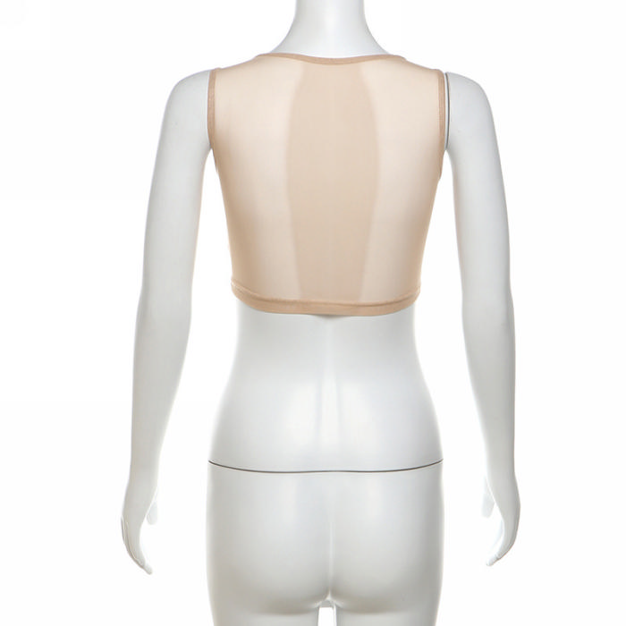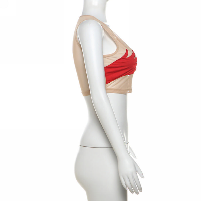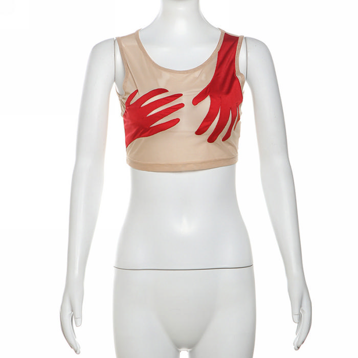 (Real Image)2024 Styles Women Sleeveless Patchwork Palm Print Round-Neck Fitted Crop TopSKU: #CF83395-1