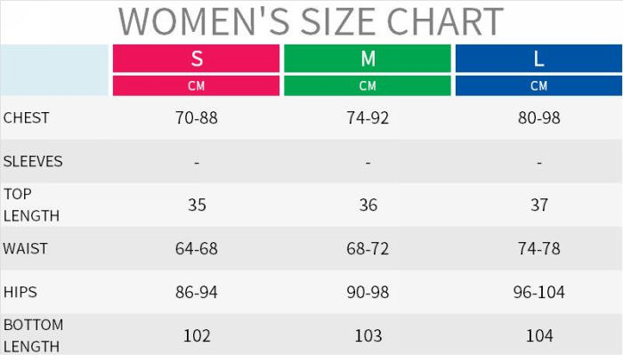 | Size | Bust | Waist | Hips |