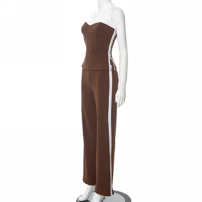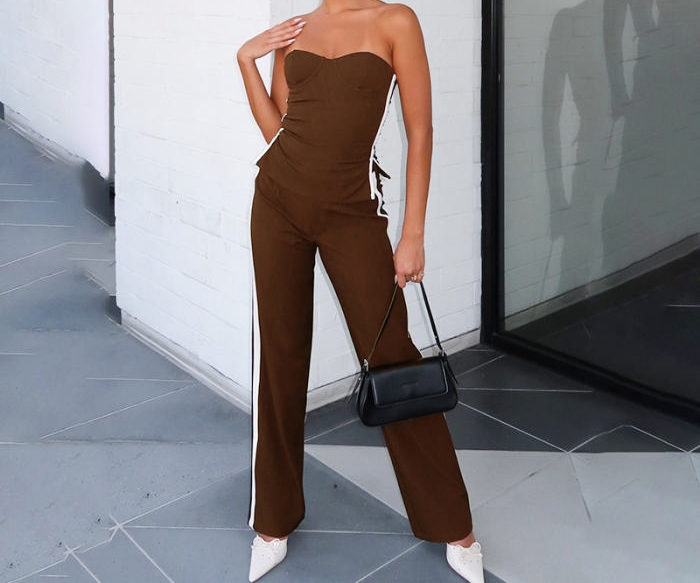 (Real Image)2024 Styles Women Slimming Casual Women's Sleeveless Solid Color Commuter Striped Paneled SuitSKU: #CF42063-1