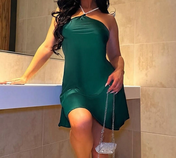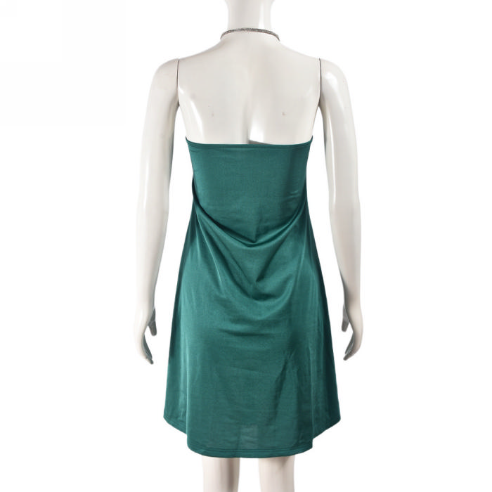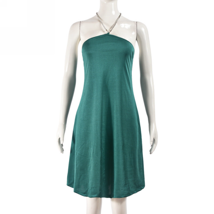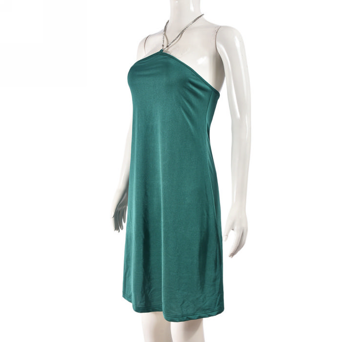 (Real Image)2024 Styles Women Slinky Backless Sleeveless Chain Halter Mini DressSKU: #CF59898-1
