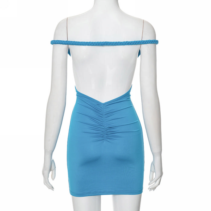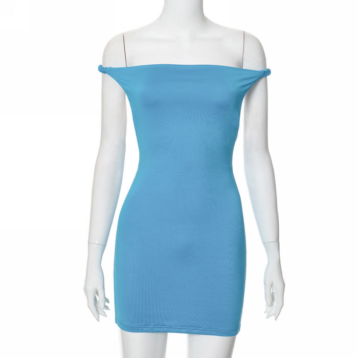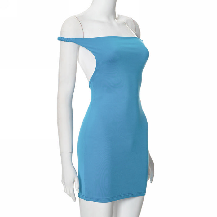 (Real Image)2024 Styles Women Solid Color Sleeveless One-Shoulder Pleated Waist-Cinch Pleated Hip-Hugging DressSKU: #CF42041-1