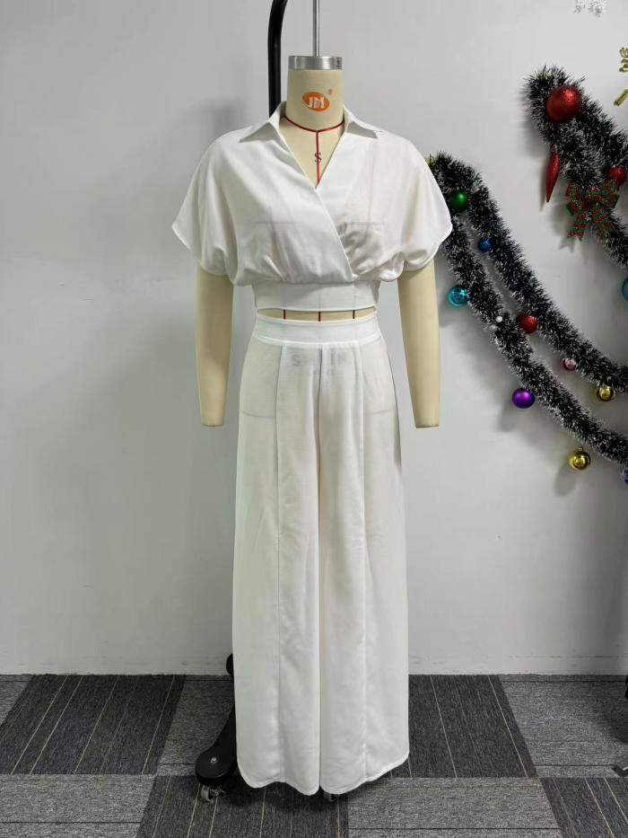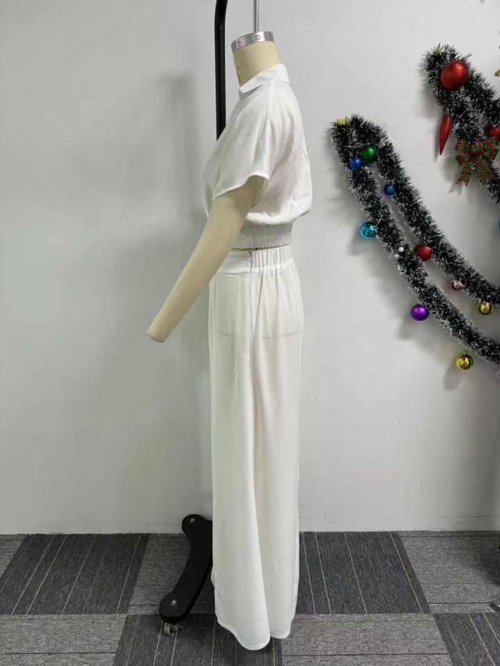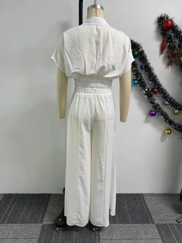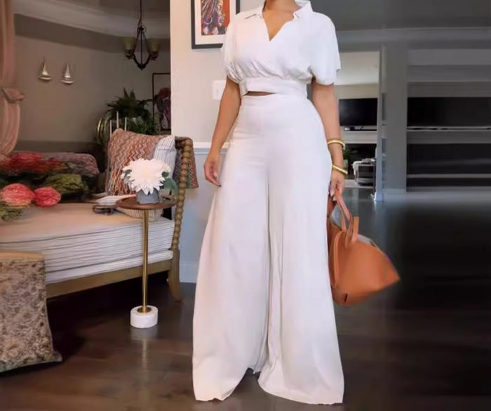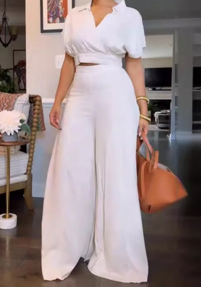 (Real Image)2024 Styles Women Solid Color Waist-Cinch Loose Flared Pants Set, Two-Piece OutfitSKU: #XF27479-1